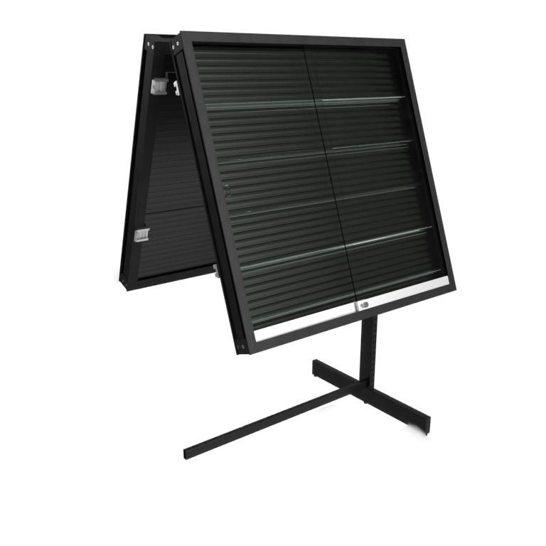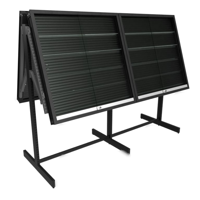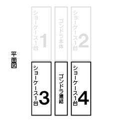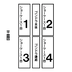 | 素材 | [ショーケース] サイズ:W900 H900 D70mm 扉:ガラス フレーム:アルミニウム 背板:シャッターパネル レール:可動タイプ 立てかけレール5段 [ゴンドラ什器] サイズ:(内寸)W925 H1350 D732 スチール製 粉体塗装 |