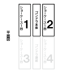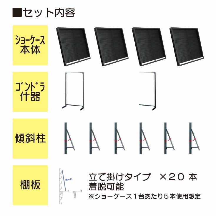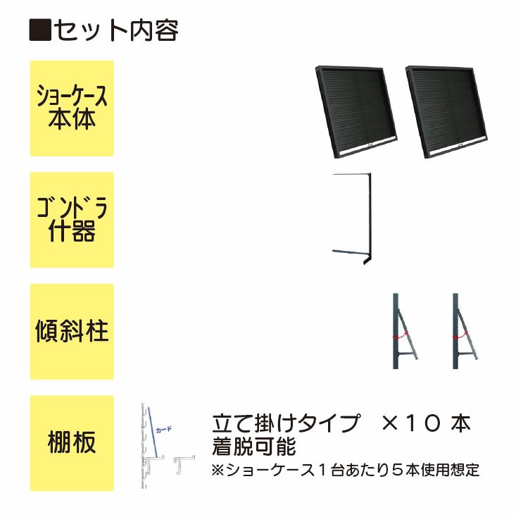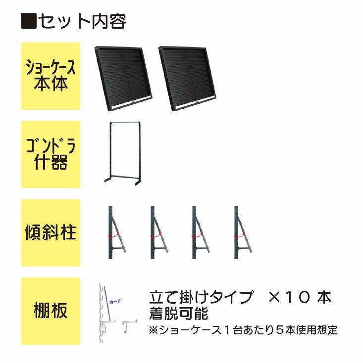 ショーケース本体とゴンドラ什器のセット商品です。仕様の詳細については以下のサイトをご確認ください。